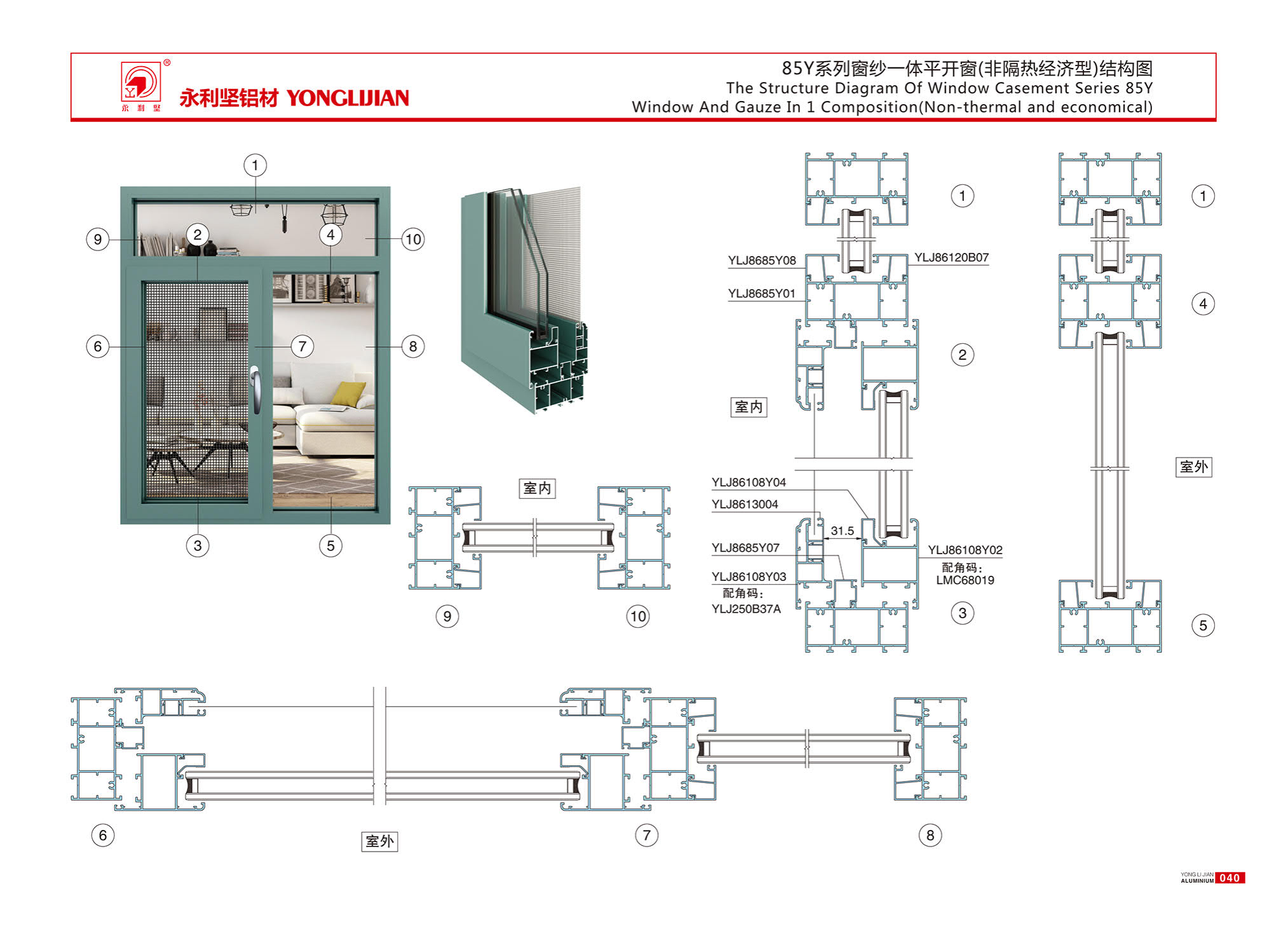 85Y series window screen integrated casement window (non heat insulation and economic type)